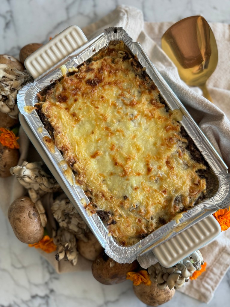 Ingredientes: Farinha de trigo, ovos, azeite de oliva extra virgem, sal, cogumelo Paris, cogumelo porto belo, cogumelo shimeji, tomilho, manteiga de leite, leite integral, noz moscada, queijo mussarela. CONTÉN GLÚTEN.